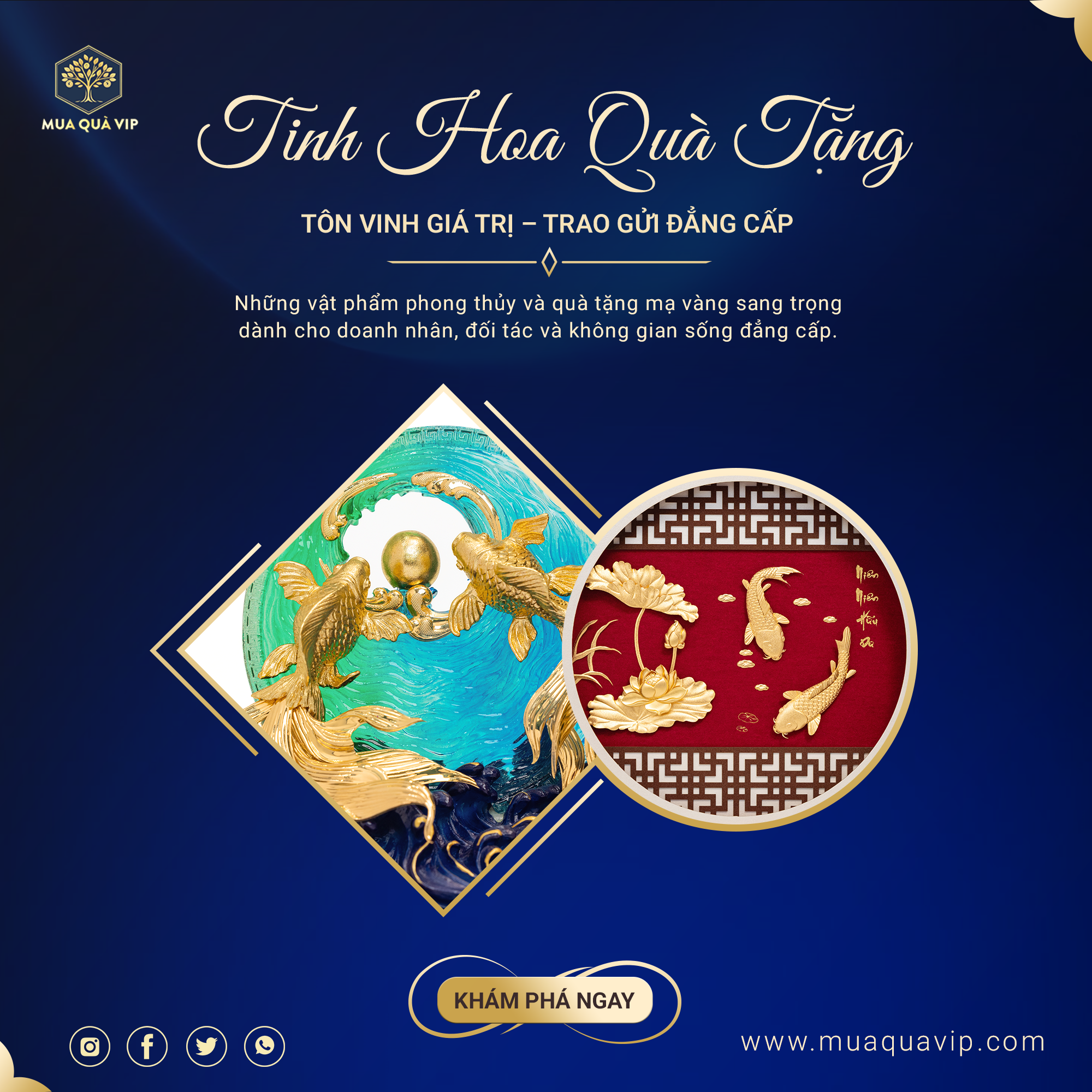 Tranh Song Ngư Liên Hoa dát vàng 24K