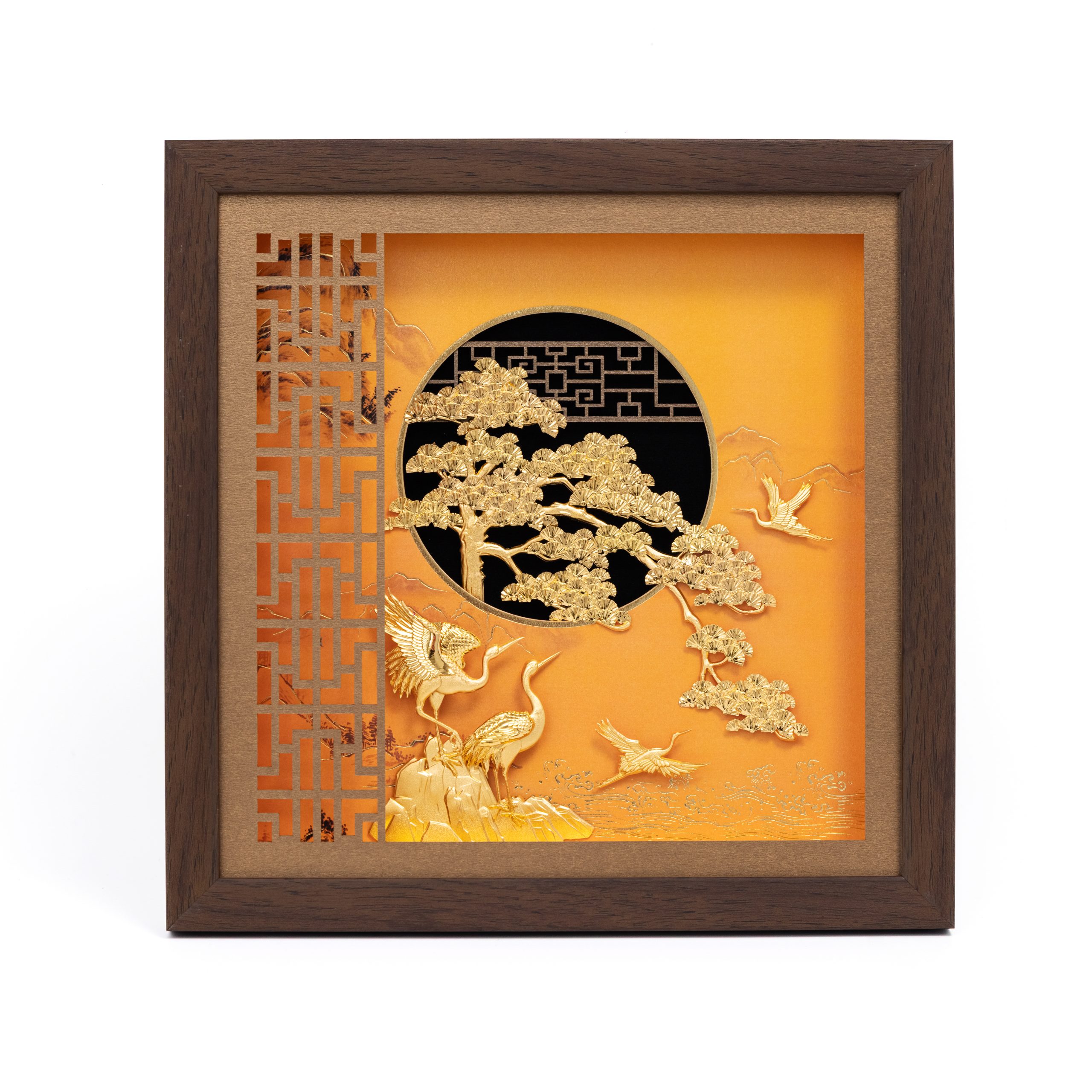 Tranh Tùng Hạc Diên Niên Mạ Vàng 24K – Tranh Phong Thủy Trường Thọ, Phúc Lộc